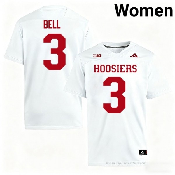 Show the World You're a Hoosiers Fan: #3 Jaylen Bell Hoosiers Jersey | Women White High School Stitched Foottball Collection 10633597! Made with high-performance, moisture-wicking materials, this jersey is ideal for intense game days and active fandom. It features official team graphics, Jaylen Bell's name, and IU's classic design, so you can represent your team with pride. Limited stock available, order today and don't miss out!