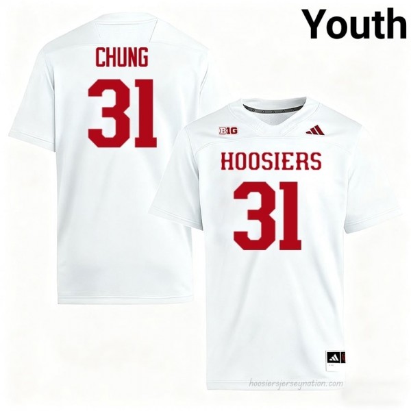 #31 Anthony Chung Hoosiers Jersey | Youth White Player Stitched Foottball Collection 69011395