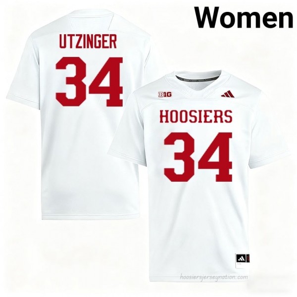 #34 Jeff Utzinger Hoosiers Jersey | Women White University Stitched Foottball Collection 56290019