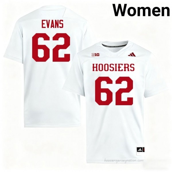 Show the World You're a Hoosiers Fan: #62 Drew Evans Hoosiers Jersey | Women White University Stitched Foottball Collection 67760534! Made with high-performance, moisture-wicking materials, this jersey is ideal for intense game days and active fandom. It features official team graphics, Drew Evans's name, and IU's classic design, so you can represent your team with pride. Limited stock available, order today and don't miss out!