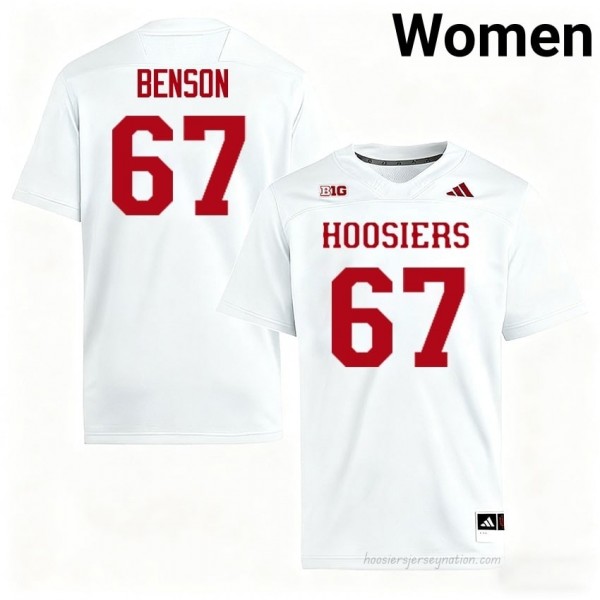 Show the World You're a Hoosiers Fan: #67 Kahlil Benson Hoosiers Jersey | Women White College Stitched Foottball Collection 77193896! Made with high-performance, moisture-wicking materials, this jersey is ideal for intense game days and active fandom. It features official team graphics, Kahlil Benson's name, and IU's classic design, so you can represent your team with pride. Limited stock available, order today and don't miss out!