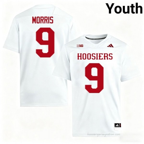 Wear Your Hoosiers Heart on Your Chest: IU #9 Tyler Morris Game-Day Jersey | Youth White High School Foottball Premium Embroidered 75024547! Made with premium, breathable materials, this jersey is perfect for cheering on IU from kickoff to the final whistle. It features bold team colors, Tyler Morris's number, and official logos, capturing the spirit of Hoosiers football. Free shipping on orders, order today and represent with pride!
